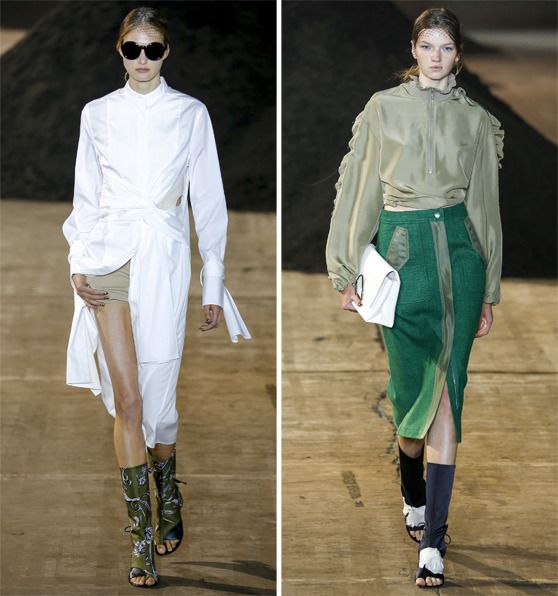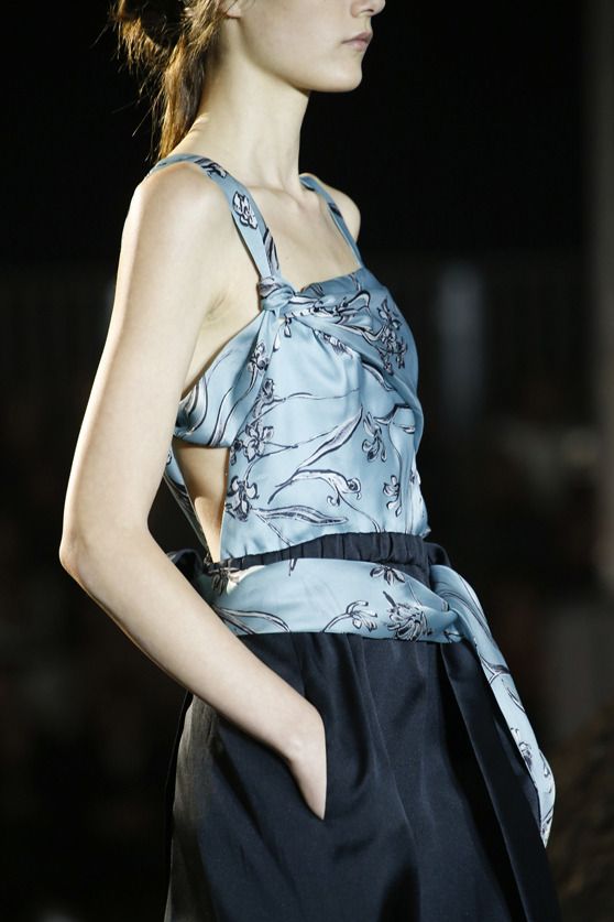 finally, phillip lim showed an elegant collection yet again, bridging the gap between wang’s urban girl and givenchy’s more proper, french lady. stripes—which were big in both wang and givenchy’s collections—showed up again here but juxtaposed with floral prints, oversized shirt dresses, paper bag waist pants, and scuba separates.
