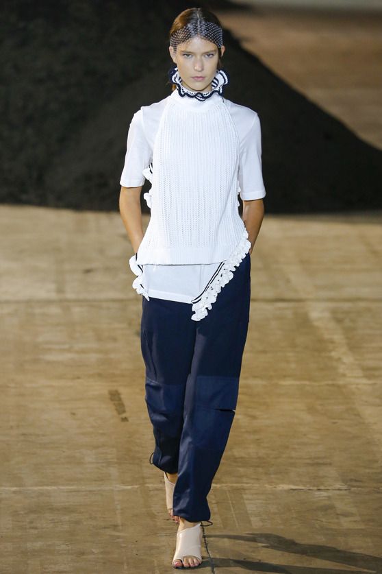 not to be outdone, alexander wang brought the street to his tenth anniversary but still had some preppy pieces like striped shirts, bomber jackets, and baseball hats. i wasn’t a fan of the shredded denim (a bit too abercrombie for me), but i did love the wide striped pants, slip dresses, lace-up sweaters and the outerwear (always a wang strong suit). the collection and accessories are on moda operandi right now if you’re interested in pre-ordering the pieces.