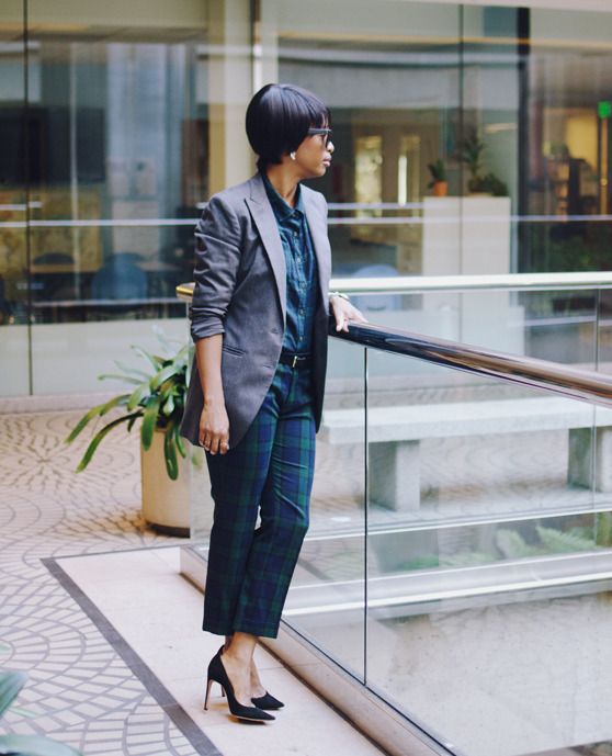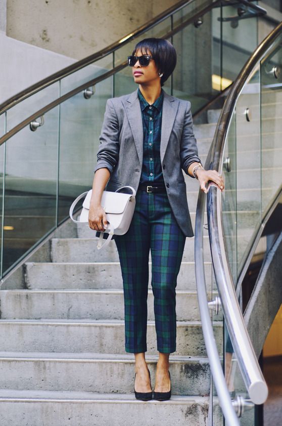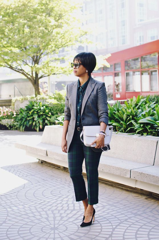 i’ve had all three of these pieces for a long time (the blazer the longest…since the late nineties), but i never thought to put the shirt and the pants together. plaids such as these can be tricky to match, so wearing a neutral blazer lets me show only part of the shirt—enough to get that they are (almost) the same.