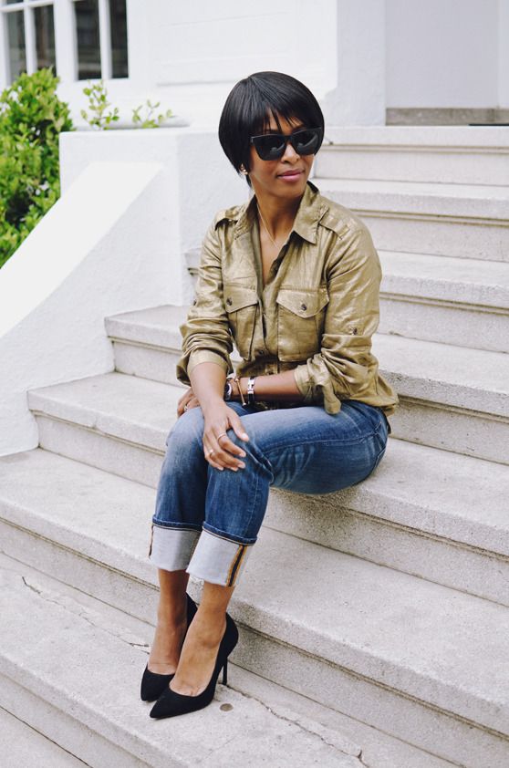 one, i picked up this safari shirt a few weeks ago from banana because i love the idea of an elevated button front shirt (like this sequin sleeve one), and this metallic linen one has great details and a nice drape.