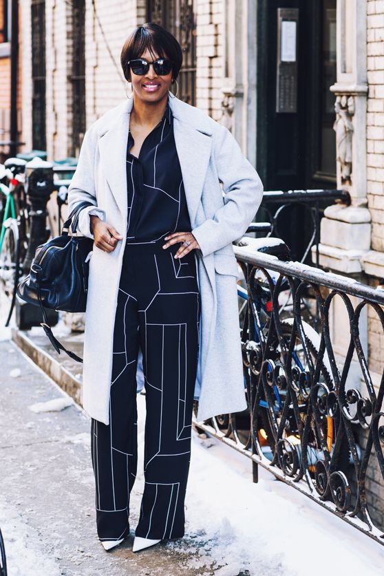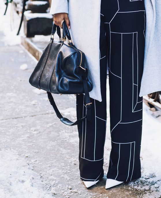 theory has been one of my favorite brands for a while now for stylish yet sophisticated workwear (like this jumpsuit). when i opened up a new arrivals email from them last month and saw these pieces, i knew i wanted to get them for fashion week. i’m been trying to break out of my skinny pant (and jean) rut, and these pants have a flattering flat front with a mid-rise and a fluid, wide leg. like the jumpsuit, it’s like wearing a cooler version of your silk pajamas.