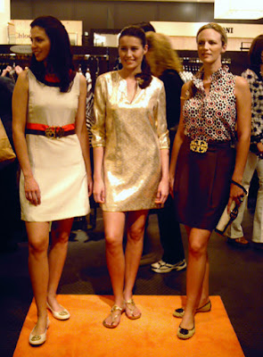 yesterday i attended a trunkshow for the summer 2007 tory burch collection. it was a packed affair, with many of the designer’s fans from all over the bay area showing up to see the entire collection and place orders. tory looked very elegant in a khaki dress, mustard cardigan, kiera wedge and carrying a “T” orange patent and canvas satchel.