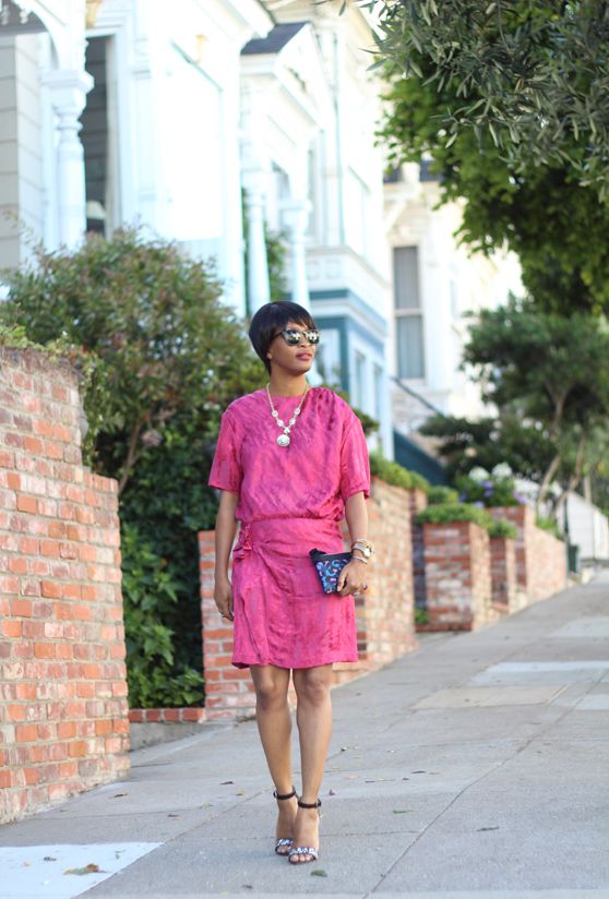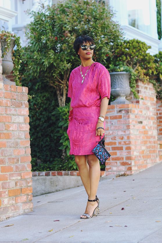 back when i was shopping for a dress for my blog birthday party, i had my eye on a few dresses, but when i saw this dress at barneys, i knew it was the one. nevermind that i had never bought anything from isabel marant (except my blazer from the h&m collaboration) and was unsure of sizing. as usual, barneys customer service was top-notch, and helped me order the right size and got it to me in time for the festivities. as an 80s teen, i am in love with what i call the “john hughes-ness” of this dress—the raspberry color, the moiré fabric, and that ruffle. it’s very andy sachs at cats on a friday night