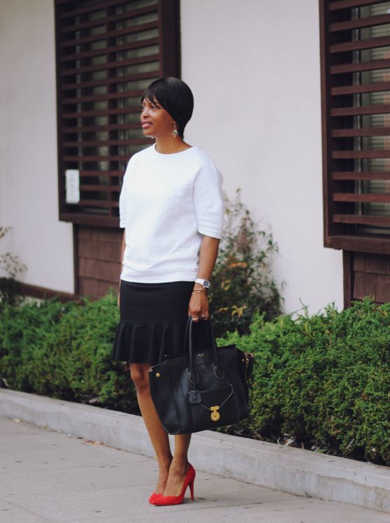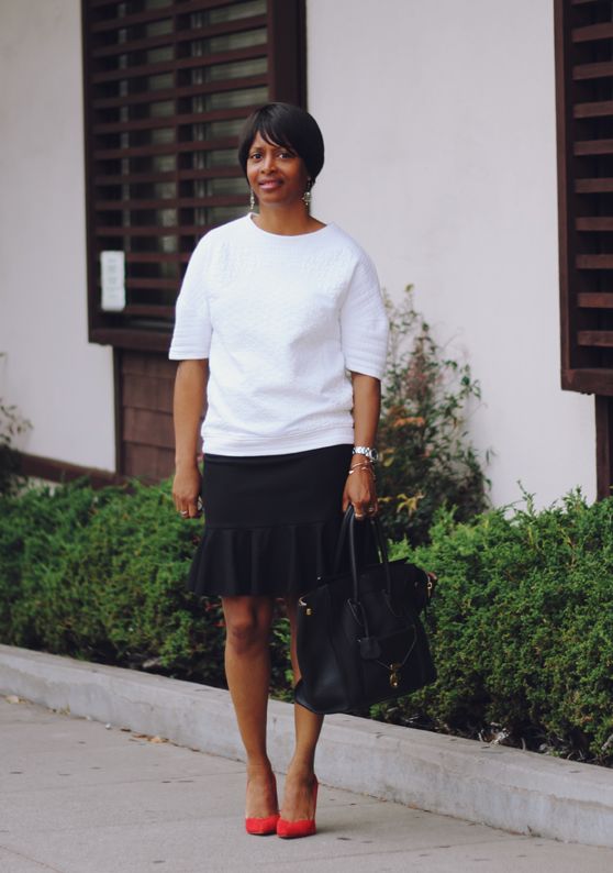 continuing the theme of sweatshirt dressing, this zara sweatshirt from earlier this year has a cool quilted texture and with the short sleeves can be layered over a button down in fall or worn alone. the skirt was something i bought last august in preparation for new york fashion week (i wore it to the lucky’s breakfast at tiffany event), and i also love its subtle texture. the two pieces together take an otherwise minimalist outfit up a notch.