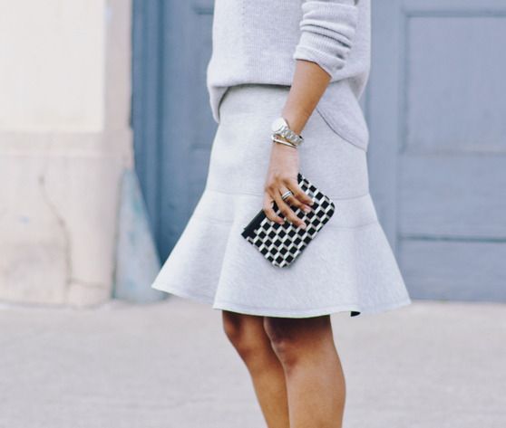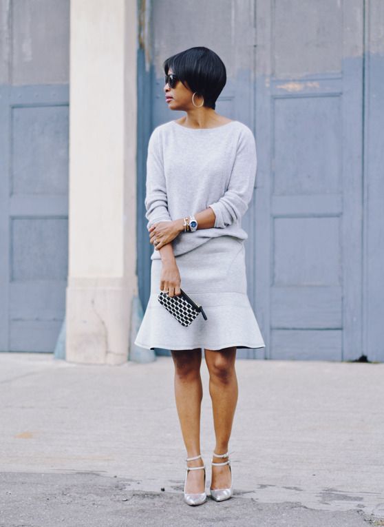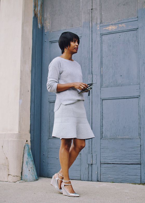 the weather here has been rather un-spring like for the past week or two, with foggy, overcast skies and chilly temperatures. so it’s only fitting that i’ve been dressing in darker tones (and a lot of denim). this cashmere sweater (on sale!) and neoprene skirt, paired with silver accents, were perfect for a meeting last week.