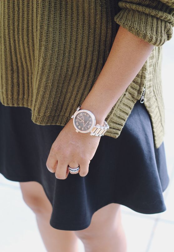 madewell sweater and skirt, saint laurent pumps, oliver peoples sunglasses, alexander wang bag, lulu frost vintage clip and plaza letter necklace, michael kors watch, vintage bracelet via elle-meme vintage, miansai bracelet via syllabus, lulu frost and melanie auld rings