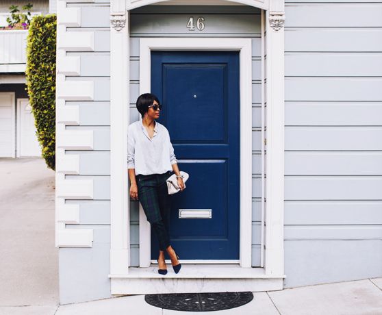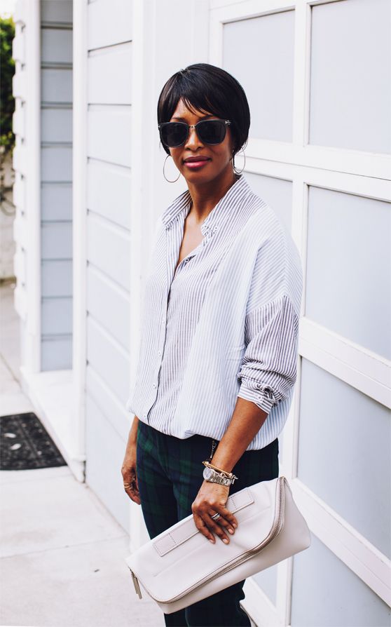 zara shirt and pants, banana republic pumps, 3.1 phillip lim clutch, tom ford sunglasses (in brown tortoise), forever 21 earrings, eddie borgo and miansai bracelets, melanie auld and vita fede rings