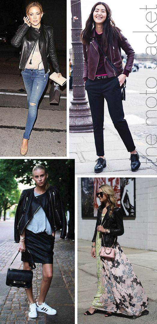when it comes to outerwear, there are really just a few pieces that will sustain you through an entire year, and the moto jacket is one of them. this timeless style originated around early 1900’s, with the first shearling versions made for aviators in the first world war. then in 1928 irving schott of schott brothers created “the perfecto,” the iconic moto jacket style featuring thick leather, a waist belt, and a flap zip closure that wouldn’t let air in while riding a motorcycle. the perfecto has been worn by marlon brando in the wild ones, james dean in rebel without a cause, and by the band the ramones, cementing its image in the counter culture. since then, the perfecto style has made its way onto the runways of every major city and reached iconic status. and while it has definitely gone mainstream, it’s the perfect way to add a bit of edge to any ensemble, from casual shorts and retro sneakers to a print maxi dress to the red carpet.